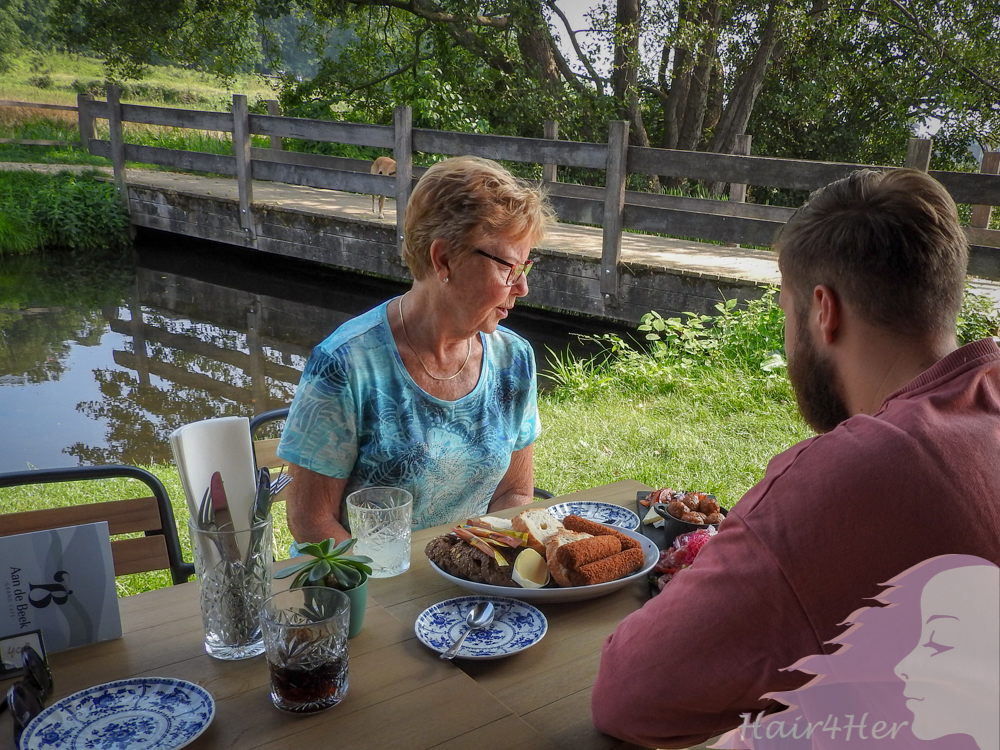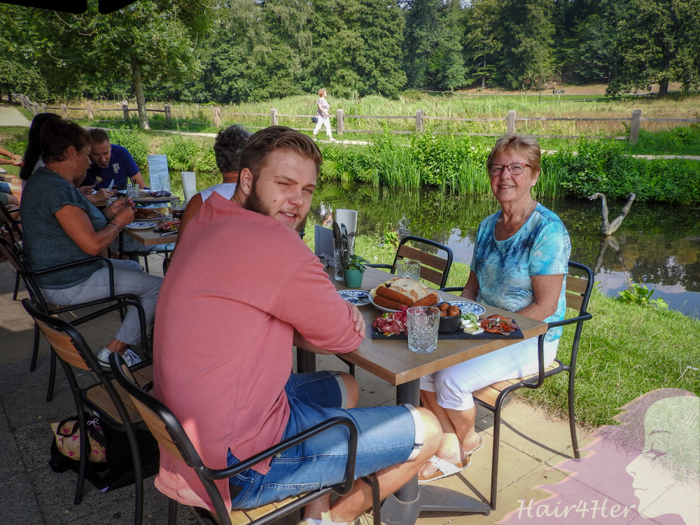 Bij Grand Café aan de Beek wachtte ons een heerlijke uitgebreide lunch buiten aan het water met uitkijk over park Sonsbeek.